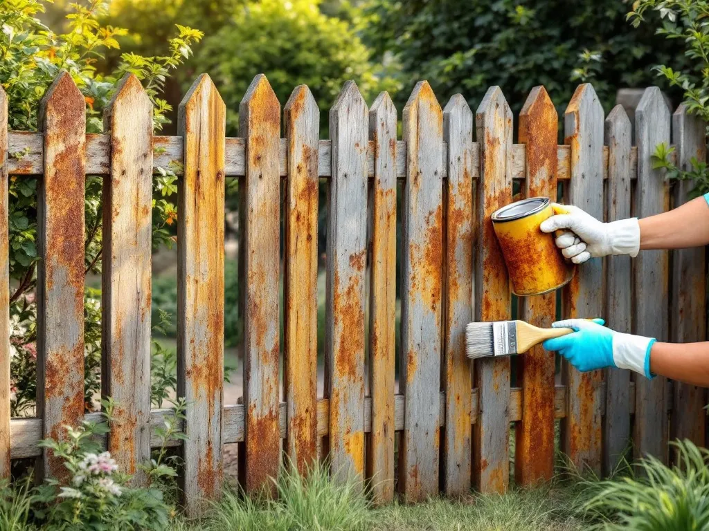 Avant de repeindre ou de laisser votre clôture à nu, traitez-la avec un primaire antirouille. Choisissez un produit oxydant spécialement formulé pour les métaux ferreux : il crée une barrière chimique qui empêche la corrosion de s’installer.